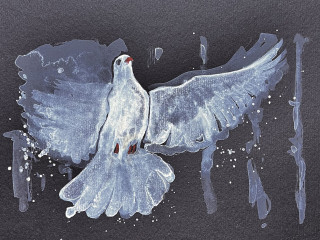 Eine Friedenstaube geht auf die Reise